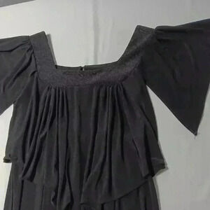 This beautiful flowing pantsuit features butterfly sleeves, wide leg, back zipper closure.