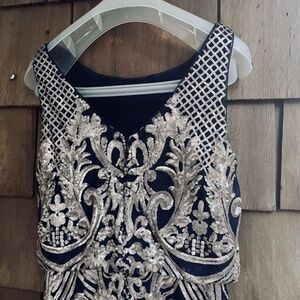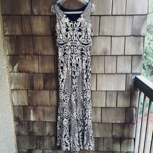 R&M Richards Womens Sequined Evening Navy Gold Maxi Gown Dress Size 6