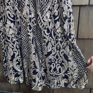 Crafted with quality polyester and designed for a regular fit, this dress offers both comfort and style. The gown comes in a classic navy and gold colour palette, making it versatile for various occasions and seasons. The size 6 dress is a perfect blend of glamour and class, finished with a seamless zip closure for a polished look.