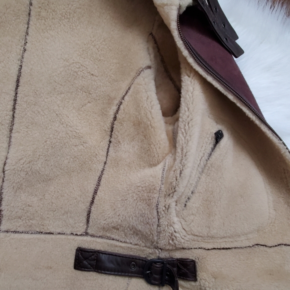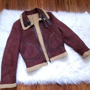 Unique maroon shearling & suede reversible jacket with top quality craftsmanship, size medium, great previously worn condition, last 2 images are to show price comparison of similar jackets