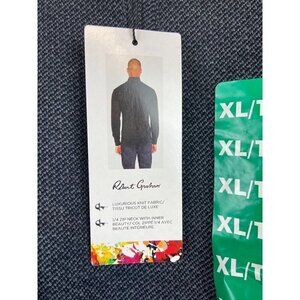 ROBERT GRAHAM Long Sleeve Quarter Zip Neck Shirt Sweater In Dark Grey