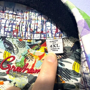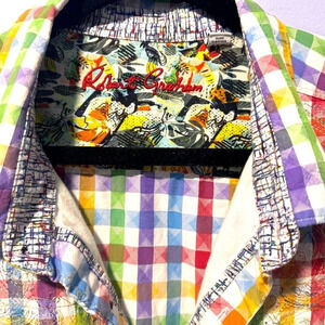 Elevate your casual look with this Robert Graham plaid button-up shirt in a vibrant multicolor design. Featuring embroidered accents and a classic fit, this long sleeve shirt is perfect for the modern man who values style and comfort. Made for men in size 4XL, this shirt is a standout piece in any wardrobe, suitable for various occasions from casual outings to more dressed-up events.