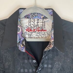 ROBERT Graham Luxury Long Sleeve Dress Shirt, XL, Black Embroidered