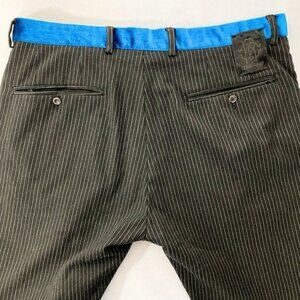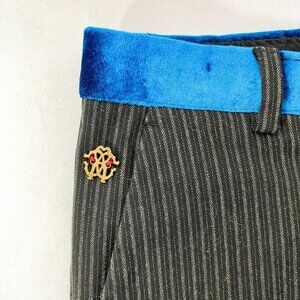 ROBERTO CAVALLI BLACK PINSTRIPES BLUE VELVET WAISTBAND DRESS PANTS - 31