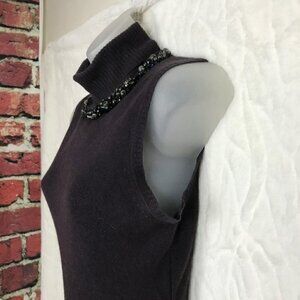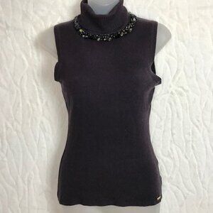 Roberto Cavalli Sleeveless Purple Loose Turtle Neck With Beautiful Beads Around The Neck Attention To Detail Very Stunning Piece Size XS
