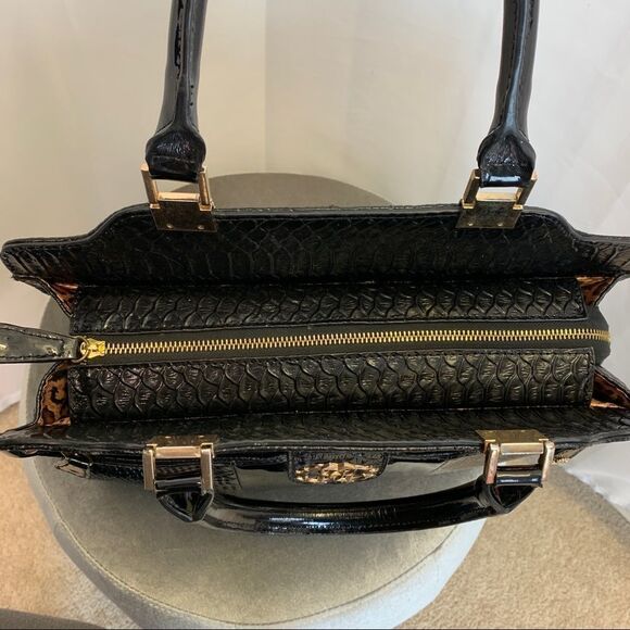 Roberto Cavalli black snakeskin print embossed patent leather purse bag