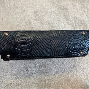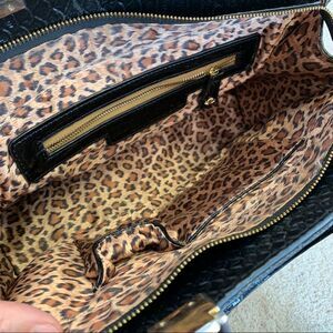 ROBERTO Cavalli black snakeskin print embossed patent leather purse bag