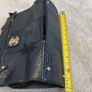 Roberto Cavalli black snakeskin print embossed patent leather purse bag