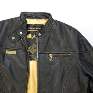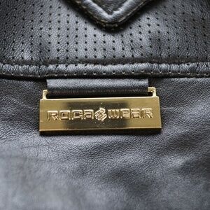 ROCA WEAR LEATHER JACKET NEW WITH TAGS. BLACK LEATHER WITH GOLD EMBELLISHMENTS