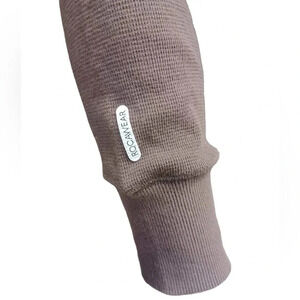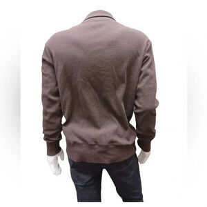 A chocolate brown pullover sweater. It’s a thinner sweater with 2 button closure. Kangaroo pocket and shawl collar