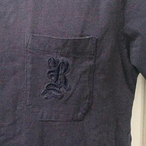 ROCHAS Paris Navy Blue V-neck Embroidered Pocket Short Sleeve Shirt
