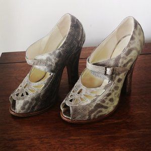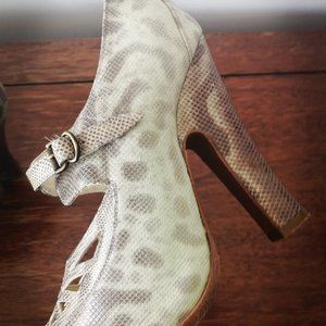 Rochas leather snakeskin platform beige shoes. Open toes and chunky shoes. Barely worn.
