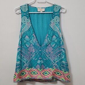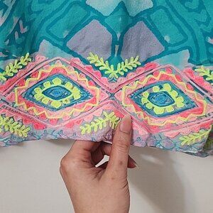 Self: 100% silk. Lining: 100% viscose. Dry clean only. Sleeveless. V neck front. Embroidered detail.