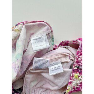 ROCOCO SAND Tessa Pink Floral Cotton Puff Sleeve Wrap Top Shorts Set, Size S