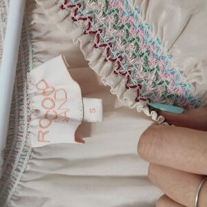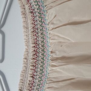 As seen on Olivia Culpo! 100% silk. Dry clean only. Smocked elastic neckline. Embroidered detail throughout. Revolve Style No. ROCS-WX125. Manufacturer Style No. CREME SLD TP BD 185 HOT PINK.
