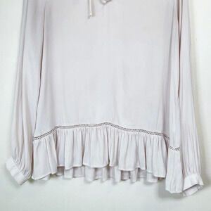 WHAT: A ruffled neck and billowy sleeves offer a nostalgic feel, while the ruffled hi-lo hem offers a fresh, modern look.