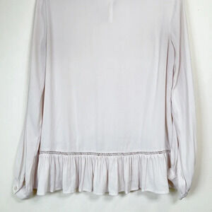 WHAT: A ruffled neck and billowy sleeves offer a nostalgic feel, while the ruffled hi-lo hem offers a fresh, modern look.