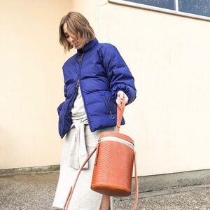 Coat shell quilted, knitted cuffs, zip pockets. Two-way zip.