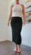 This RODIER skirt features a sleek fitted style in a rich dark green hue, perfect for a casual or work setting. Its maxi length and fitted silhouette offer a sophisticated look, while the stretchy knit fabric ensures comfort throughout the day. The minimalist design is accentuated by a clean, elastic waistband, making it a versatile addition to any wardrobe.
