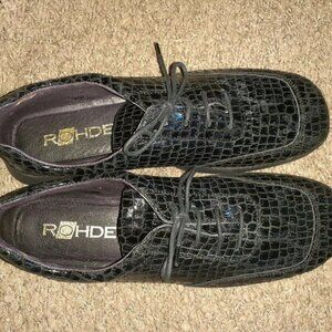 ROHDE-Dark Navy-Croc Pattern Patent with Texture-Superb-Leather-SZ 8UK-8.5 US