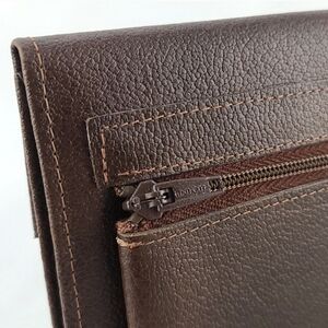 New, vintage sleek ROLFS women's trifold wallet made of genuine leather in rich brown colour with snap closure and removable checkbook holder.