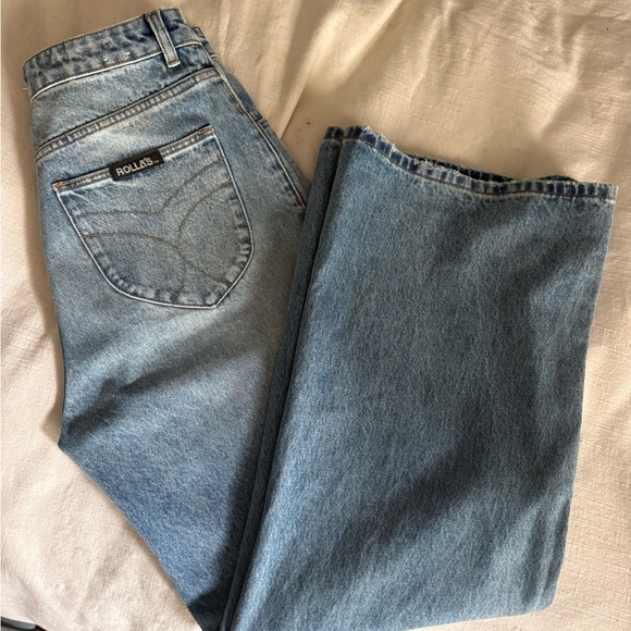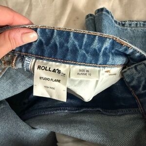 Rollas studio flare high rise denim. Size 28, 14.5” waist