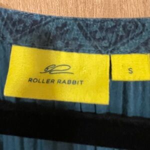 Roller Rabbit women's Blue Pine Binh Lalana searsucker dress in size small. Made in India. The easiest option for every day or a special occasion, this triple-tiered, knee-length dress features a rich, bohemian print and a deep V-neck.