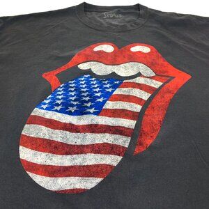 Officially licensed Rolling Stones T-Shirt commemorating their 2021 No Filter U.S. Concert Tour features iconic logo with distressed stars-and-stripes design on front and tour dates in distressed lettering on back. Size: Men’s XXL (armpit to arm pit 23”; length 31”; sleeve length 8”). Material: 100% Cotton. Colour: Dark Gray. EXCELLENT pre-owned condition.