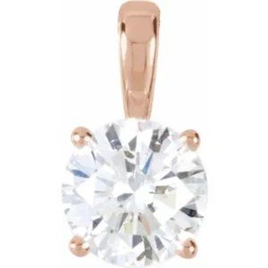 ROLORD NEW 18k white gold solitaire pendant 4 prongs set with 2ct round brilliant cut Moissanite by Rolord. Made in Canada.