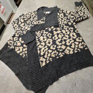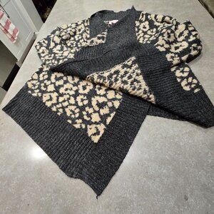 ROMEO & JULIET COUTURE Graphic Print Open Front Waterfall Cardigan Grey/Tan SML