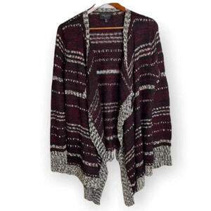 Women’s ROMEO & JULIET COUTURE Wine Grey White Mix Open Draped Knit Cardigan Duster Sweater.