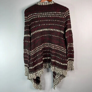 ROMEO & JULIET Open Cardigan Burgundy Grey White Mix Draped Knit Bohemian Size M