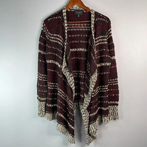 ROMEO & JULIET Open Cardigan Burgundy Grey White Mix Draped Knit Bohemian Size M