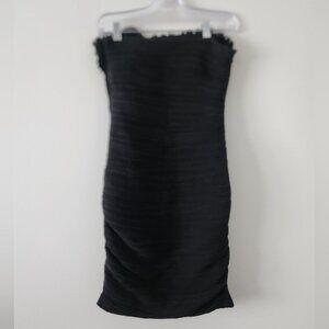 ROMEO & JULIETTE | strapless ruched dress bodycon ruffles lace flower black sz S