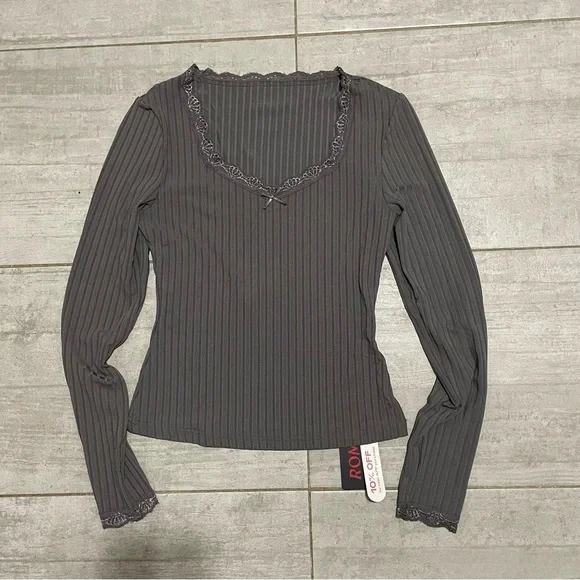 Gray ribbed top with lace details and a little bow. Only ever worn to try on - tags still attached!