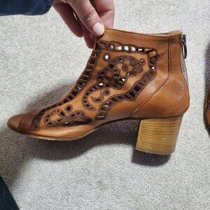 RON WHITE Italian Laser Cut-Out Peep Toe Ankle Booties Boots Brown