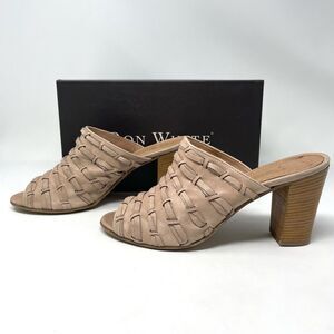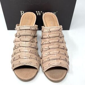 RON White Antique Nude Leather Ribbon Weave Open Toe Mule Sandals Size 41/10