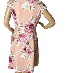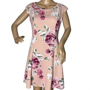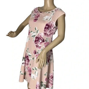 RONNI NICOLE MIDI PINK FLORAL SUMMER DRESS . CAP SLEEVE ,FIT&FLARE