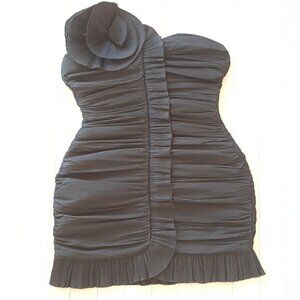 Daniel Shantung Strapless Gathered Ruffle Trim Rosette Mini Dress