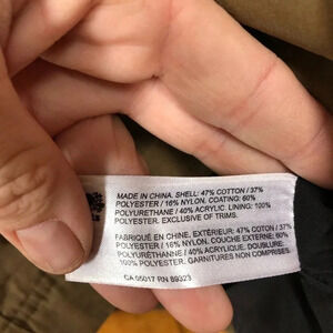 Good pre loved condition- the lower zipper is missing the pull tab and the very bottom snap has seen better days but the jacket itself is in good shape and has no tears or stains that I could see.