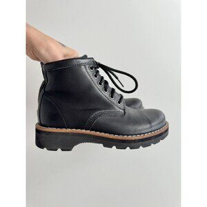 ROOTS Black Leather Lace Up Combat Ankle Work Boots, Size 5.5 - Made in Canada