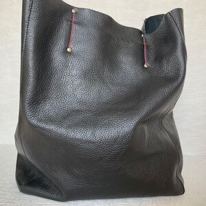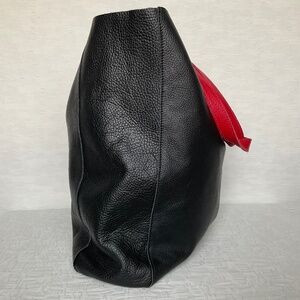 ROOTS Black Pebbled Leather Tote w/ Red Handles Light Carryall Shoulder Bag π¨π¦