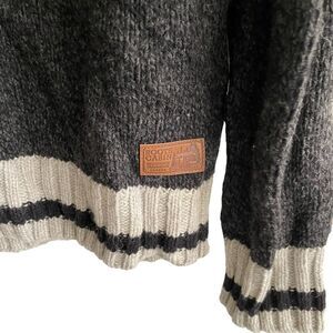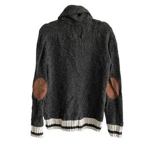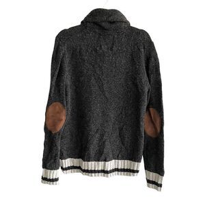 ROOTS CABIN Men’s Wool Chunky Knit Pullover Sweater Elbow Patches Black Grey M