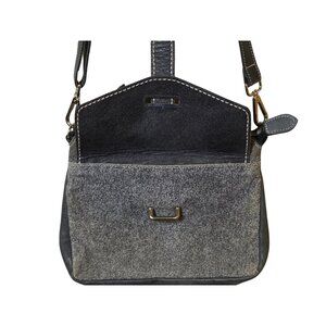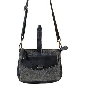 ROOTS CANADA LEATHER CROSSBODY 2 TONE GREY BAG
