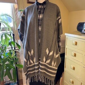 Roots Canada O/S Shawl Grey Acrylic with fringe bottom.