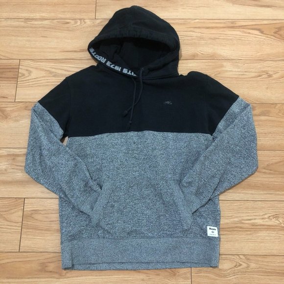 ROOTS Hoodie Sweatshirt Men's SMALL Black Gray Logo Pockets Classic EUC