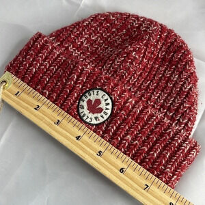 Unisex Red and white Roots Kids Marled Plaited Ribbed Knit Fisherman Cuff Beanie Toque.