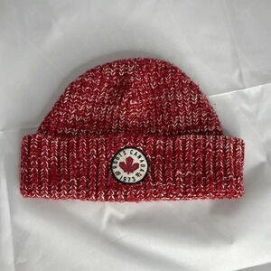 ROOTS Kids Fisherman Cuff Beanie Red White Marled Ribbed Knit Toque OS