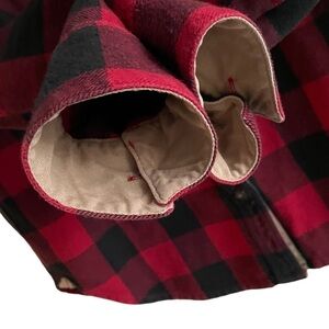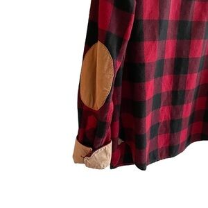 ROOTS Red Black Checked Plaid Flannel Button Front Shirt Elbow Patches