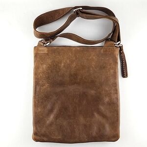 ROOTS Tan Leather Vintage Crossbody Bag Purse Multi Pockets Adjustable Strap